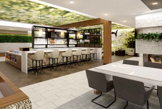 The LEED-certifiable design, Wyndham Hotel Group's seventh such prototype, includes low-flow water fixtures, five electric car charging stations and greenery in all guest areas. Additionally, filtered water stations on each floor reduces wasteful bottled water; generous natural light and guest-controlled temperature gauges cuts back on energy use; and locally sourced menu items lend to a more sustainable food process.
