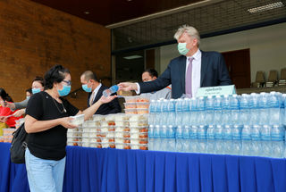 Bangkok, Thailand - Centara Hotels & Resorts, Thailand's leading hotel operator, recently donated 1,500 food boxes to the Thai Government's Public Relations Department, as part of its ongoing efforts to help those communities and individuals most affected by the COVID-19 pandemic. The meals, which were prepared by a team of food and beverage staff at Centara's flagship, Centara Grand at CentralWorld, were presented by General Manager of the hotel, Robert Maurer-Loeffler, to the Deputy Director-General of the Government Public Relations Department, Pichaya Muangnao. The meals were distributed to people impacted by COVID-19 and others needing assistance.