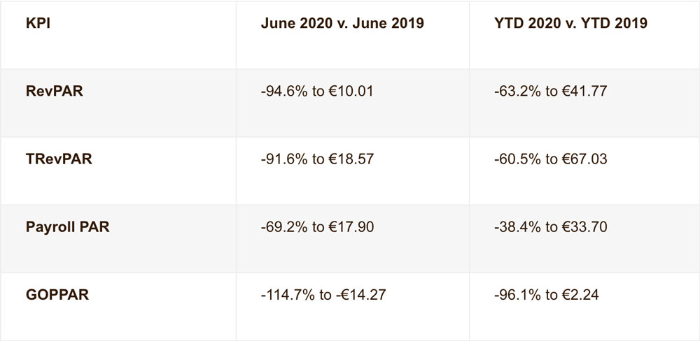 RevPAR in the region was down 94.6% YOY, with average rates below €100 coupled with sub-10% occupancy rates.