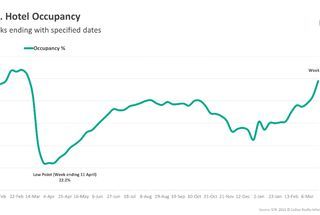 The 58.9% absolute occupancy was a 93.9% increase from the comparable, pandemic-affected week last year, but more importantly, represented almost 85% of occupancy regained from the 2019 benchmark. There was also more improvement in ADR, which reached 81% of the comparable 2019 level.