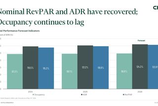 CBRE remains optimistic that RevPAR will achieve a nominal record of $101.20 this year, representing 115% of pre-pandemic levels in 2019. This outlook is based on projected average daily rate (ADR) growth of 1.7% and a 0.2% increase in occupancy.