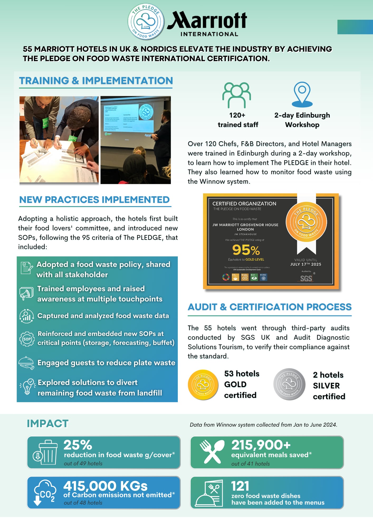We’re incredibly pleased to see Marriott UKIN pave the way on the critical issue of food waste in hospitality. 12 years of expertise in food waste prevention is encapsulated in this project, combining technical capacity building, joint strategy, tailored support, and third-party certification. We believe this success will inspire more industry leaders to become PLEDGERs too. Marco Sandri, Global Manager of The PLEDGE on Food Waste