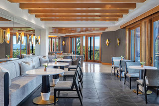 Revealing itself at the end of the radiant stairway descending from the lobby, the renovated Manzanita restaurant is reborn with layers of texture and warmth. The restaurant’s destination bar has been updated with an extension to the carved wood bartop harmonized to the wooden valence suspended above the bar, while a new wood-paneled soffit treatment framing the liquor display suspended above the bar extends into the opened kitchen, adding dimension and axis to the space. The restaurant’s design juxtaposes raw and refined: hand-hewn ceiling beams and natural stone meet tailored furnishings and geometric patterned rugs, delivering a dining atmosphere that is intimate yet dramatic, and perfectly attuned to luxurious mountain living.