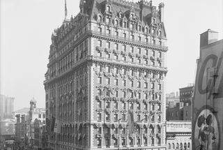 The Knickerbocker was only one of several New York hotels constructed by the Astor family in the nineteenth and early twentieth centuries. Beginning with the Astor House of 1836 on lower Broadway, the family established a reputation for building costly and well-appointed hotels. John Jacob Astor (1864-1912), the fourth namesake of the patriarch of the family, and his cousin William Waldorf Astor (1848-1919) built a number of luxury hotels around the turn of the century. William Waldorf's Waldorf Hotel of 1893 and John Jacob's Astoria Hotel of 1897 on adjacent sites (both sites are now occupied by the Empire State Building, a designated New York City Landmark) were eventually joined to form the first Waldorf-Astoria Hotel (architect, Henry J. Hardenbergh) which was considered in its day to be the grandest New York hotel, setting the standard for others to equal or surpass.