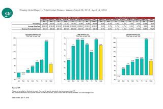 HENDERSONVILLE, Tennessee – The U.S. hotel industry reported positive year-over-year results in the three key performance metrics during the week of 8-14 April 2018, according to data from STR.