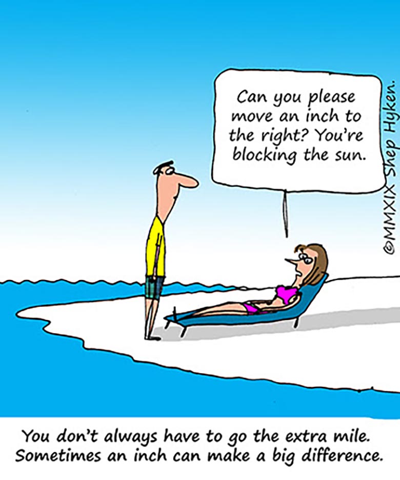 The point is, don't be lazy. Don't take the easy way out. You don't necessarily have to go the extra mile, but consider going the extra inch. It's almost always noticed and appreciated.